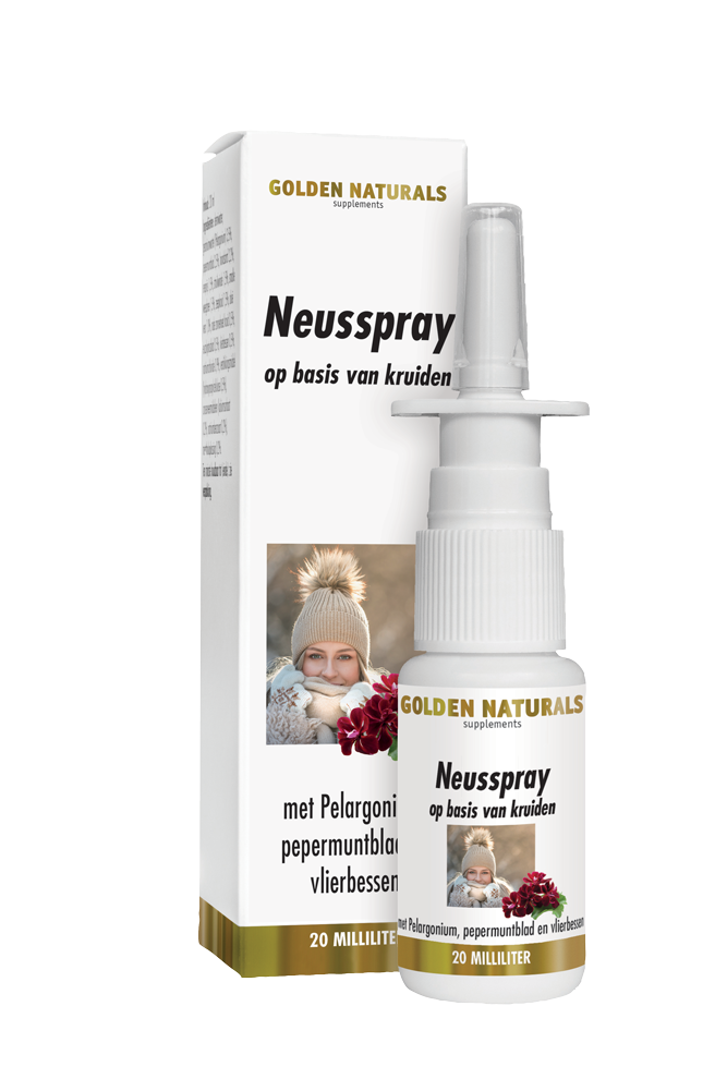Het is geschikt voor kort- en langdurig gebruik, er is geen sprake van gewenning. Golden Naturals Neusspray is een neusspray op basis van diverse kruiden waaronder Pelargonium, pepermuntblad en vlierbessen.