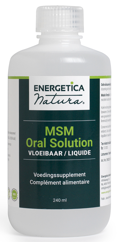 Energetica Natura MSM Oral Solution Vloeibaar bevat per dagdosering van 5 ml (1 theelepel) 750 mg MSM (Methyl-sulfonyl-menthaan).