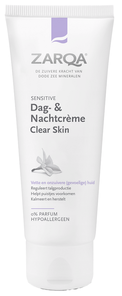 Zarqa Dag- & Nachtcrème Clear Skin Sensitive is specifiek ontwikkeld om de vette en onzuivere (gevoelige) huid beter in balans te brengen.