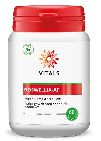 Onderzoek heeft aangetoond dat na 5 dagen al de eerste resultaten merkbaar zijn. Vitals Boswellia-AF bevat het nieuwe AprèsFlex® next-generation boswellia-extract met superieure opneembaarheid en effectiviteit.