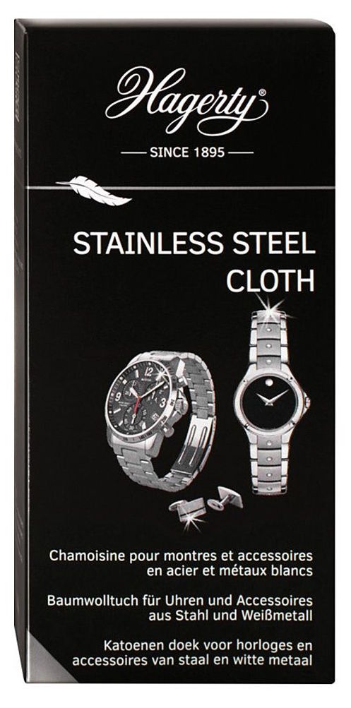 Hagerty Stainless Steel Cloth is een speciaal geïmpregneerde doek voor het reinigen en onderhouden van horloges en accessoires van metaal, roestvrij staal.