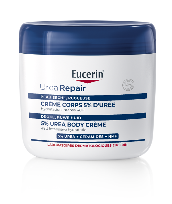 Eucerin UreaRepair Body Crème 5% Urea (450 ml) op basis van urea, ceramide en andere Natural Moisturising Factors (NMFs) biedt klinisch bewezen directe verlichting en intense, langdurige hydratatie voor de droge en zeer droge huid.