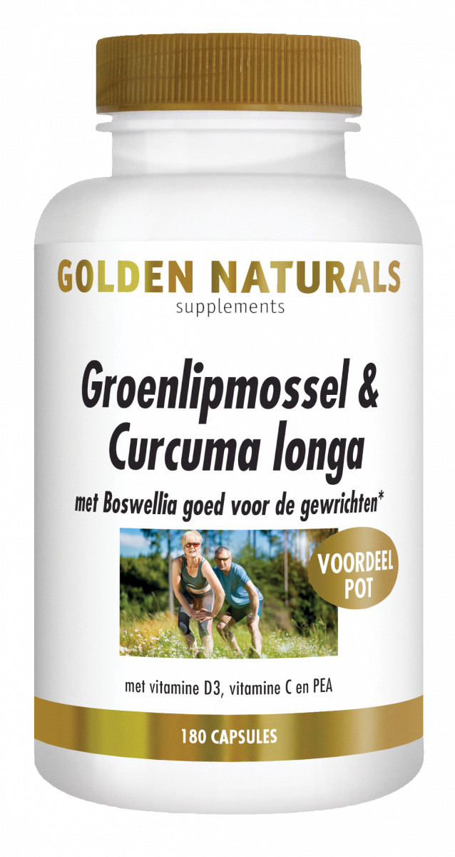 Dit product is van naam veranderd: Groenlipmossel Complex is Groenlipmossel & Curcuma longa geworden Golden Naturals Groenlipmossel & Curcuma longa is een voedingssupplement dat naast Groenlipmossel ook Boswellia en vitamine D3 bevat.