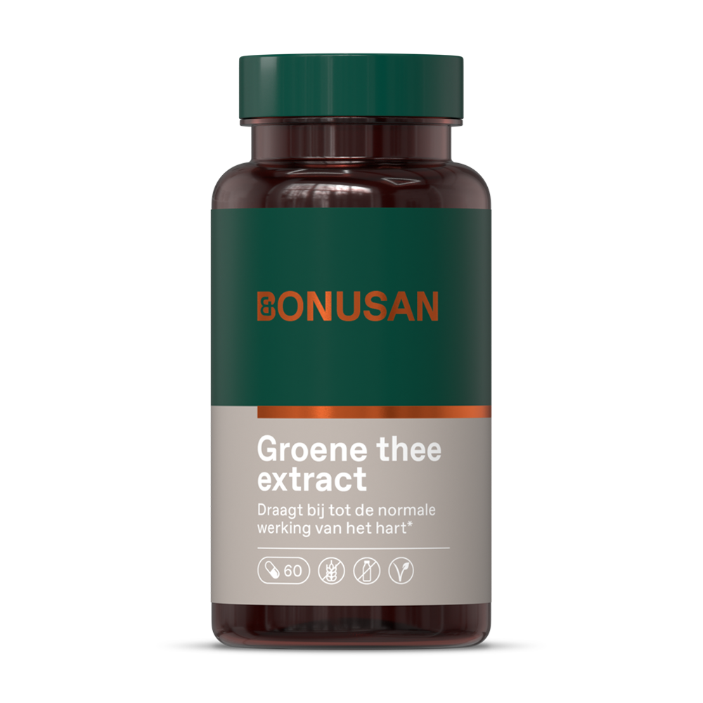 Deze bladeren zijn van nature rijk aan catechinen en theanine en zijn de meest waardevolle stoffen in groene thee. Bonusan Groene Thee Extract Capsules (60 stuks) is een voedingssupplement op basis van niet-gefermenteerde, jonge theebladeren.