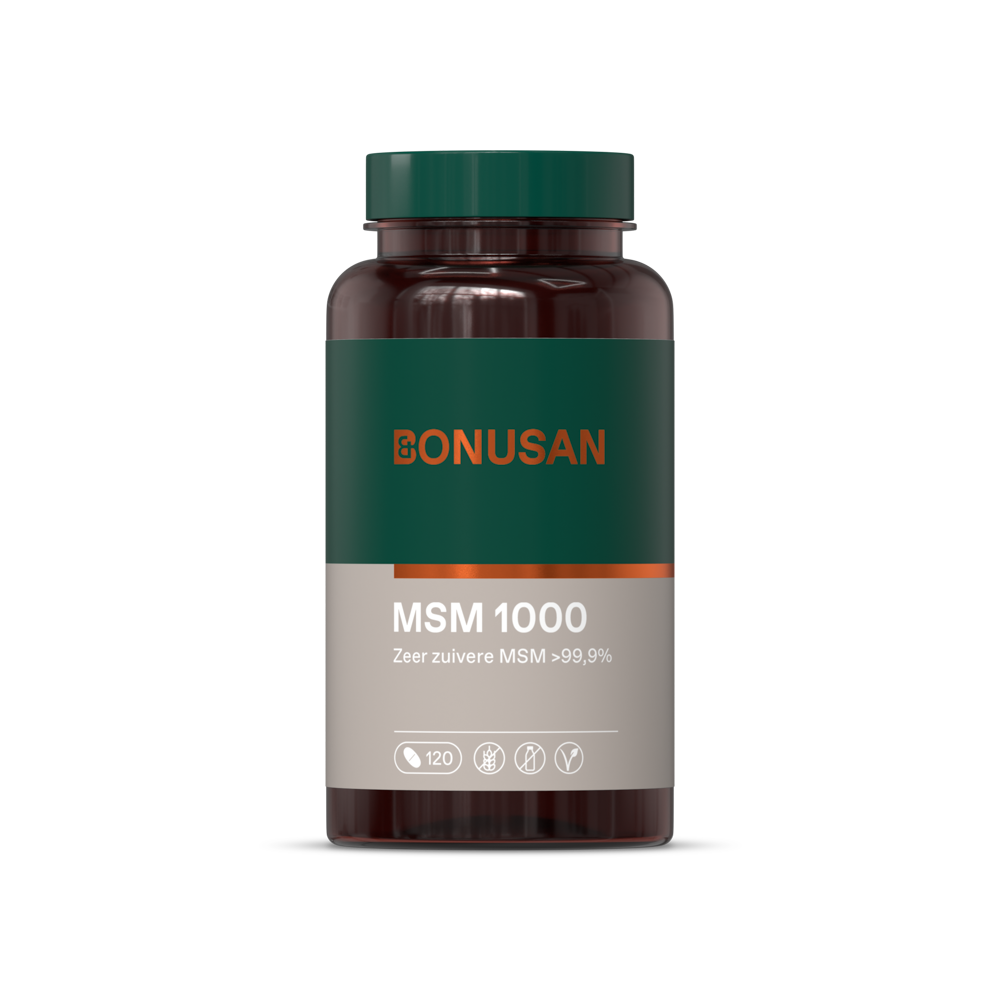Dit is een organisch gebonden vorm van zwavel, waarbij twee methylgroepen zijn gekoppeld aan een zwavelatoom. Bonusan MSM 1000 Tabletten (120 stuks) is een voedingssupplement op basis van methylsulfonylmethaan (MSM).