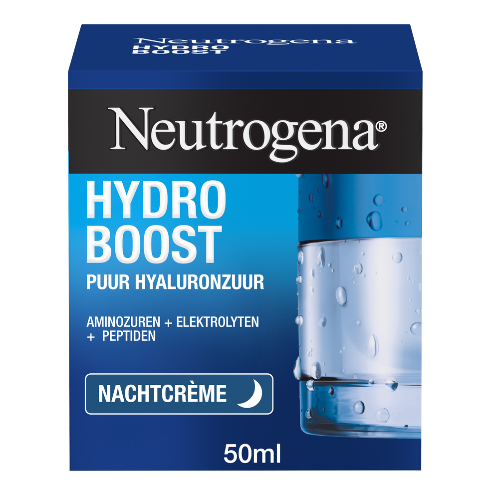 Neutrogena Hydro Boost Puur Hyaluronzuur Nachtcrème - Ontdek nu de nieuwe en verbeterde Hydro Boost formule van Neutrogena! Dankzij de snel absorberende formule en hydraterende ingrediënten zoals: aminozuren, elektrolyten, hyaluronzuur en peptiden wordt de huid tot wel 6x.