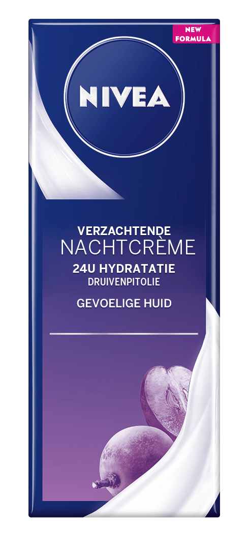 Nivea Essentials 24u Nachtcrème Gevoelige Huid met Druivenpitolie en Zoethoutextract om de huid intensief te hydrateren en de belangrijkste tekenen van een gevoelige huid: roodheid, trekkerigheid en droogheid te verminderen.