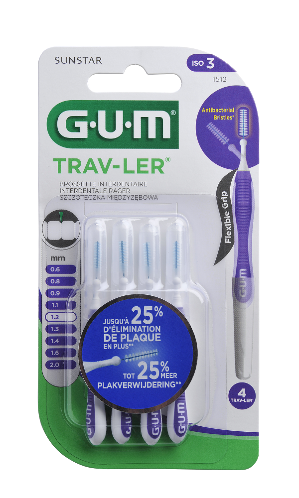 GUM Trav-Ler Rager 1.2 verwijdert tandplak 25% beter tussen tanden en kiezen op een effectieve manier dankzij de driehoekig gevormde borstelhaartjes.