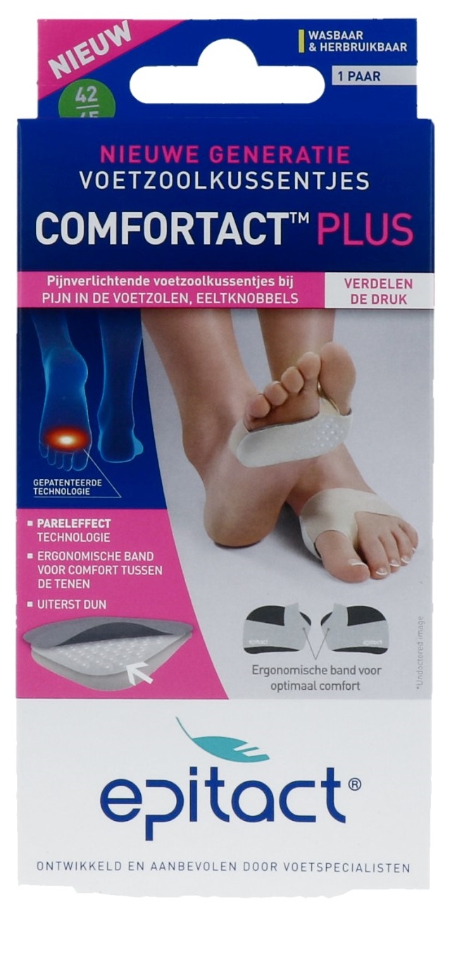 Doordat er dankzij slijtage druk en wrijving kan ontstaan, gaat de huid in verdediging en maakt eelt aan. Epitact Voetzoolkussentjes 42/45 is speciaal ontwikkeld voor de pijnverlichting van de voetzolen en eeltknobbels.