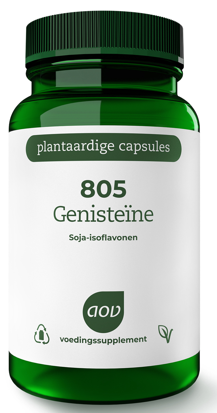 Genisteïne behoort tot de isoflavonen, stoffen die met name in sojabonen voorkomen. AOV 805 Genesteïne Soja-isoflavonen Vegacaps bevat een soja isoflavonen-complex en een dagdosering 88mg genisteïne.