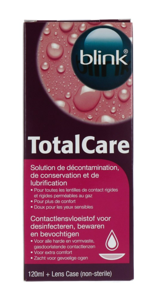 AMO Blink TotalCare solution is een lenzenvloeistof speciaal voor het dagelijks desinfecteren, bewaren en bevochtigen van alle harde zuurstofdoorlatende contactlenzen.