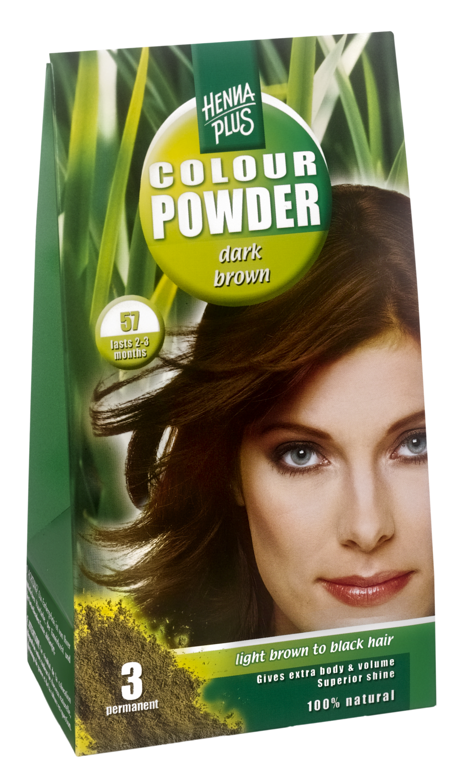 Geformuleerd met 100% biologische ingrediënten zonder synthetische toevoegingen. Hennaplus Colour Powder 57 Dark Brown is een 100% natuurlijke haarkleuring voor een permanente haarkleur met een intensief resultaat en maximale glans.