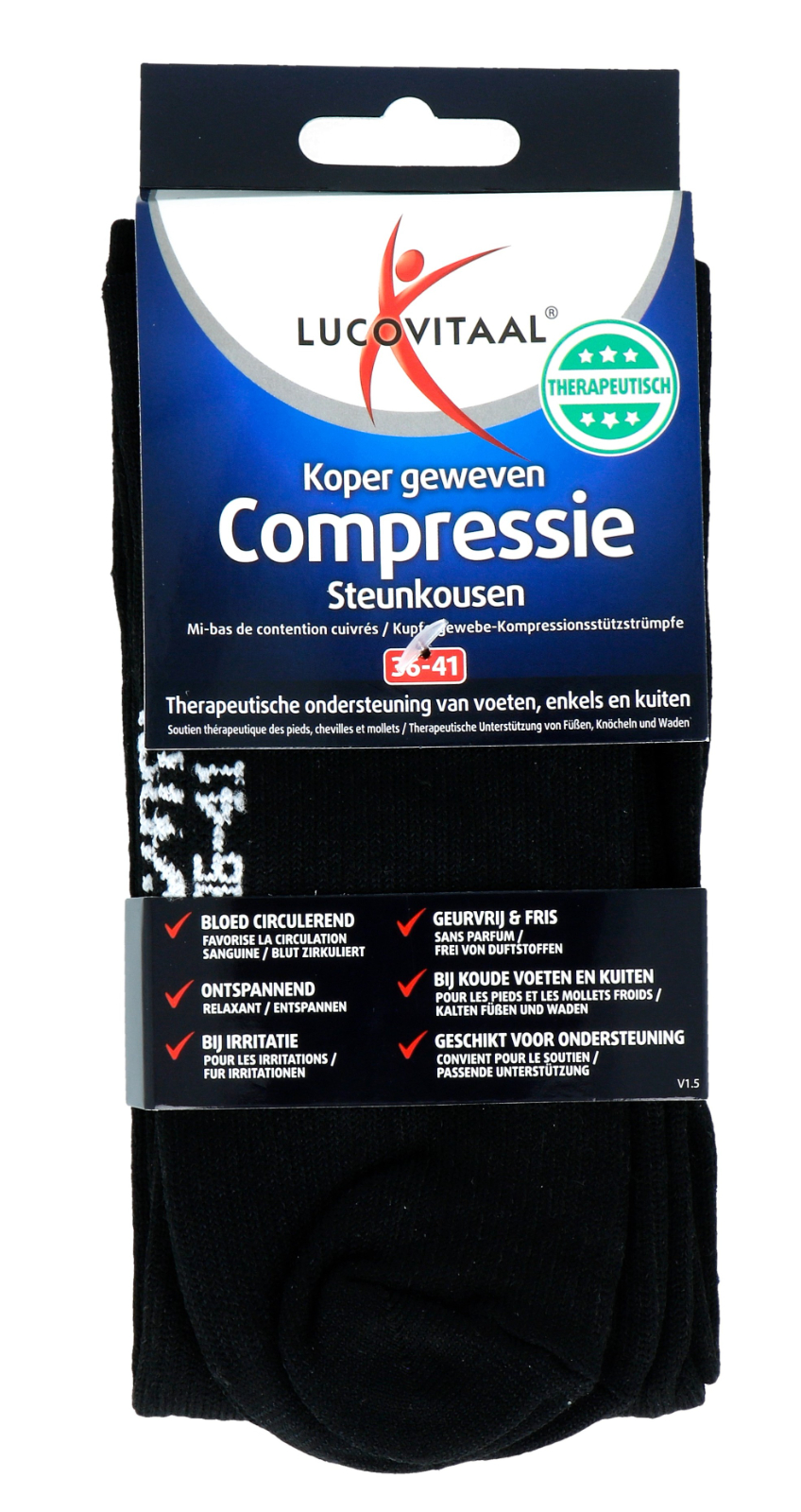 | Naam | Lucovitaal Koper Geweven Compressie Steunkousen Zwart 36-41 |