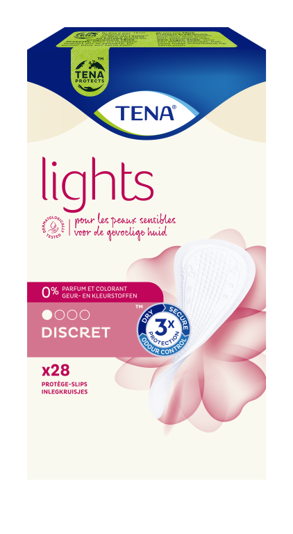 TENA Lights Inlegkruisjes Light Gevoelige Huid is een discreet inlegkruisje voor de gevoelig huid.