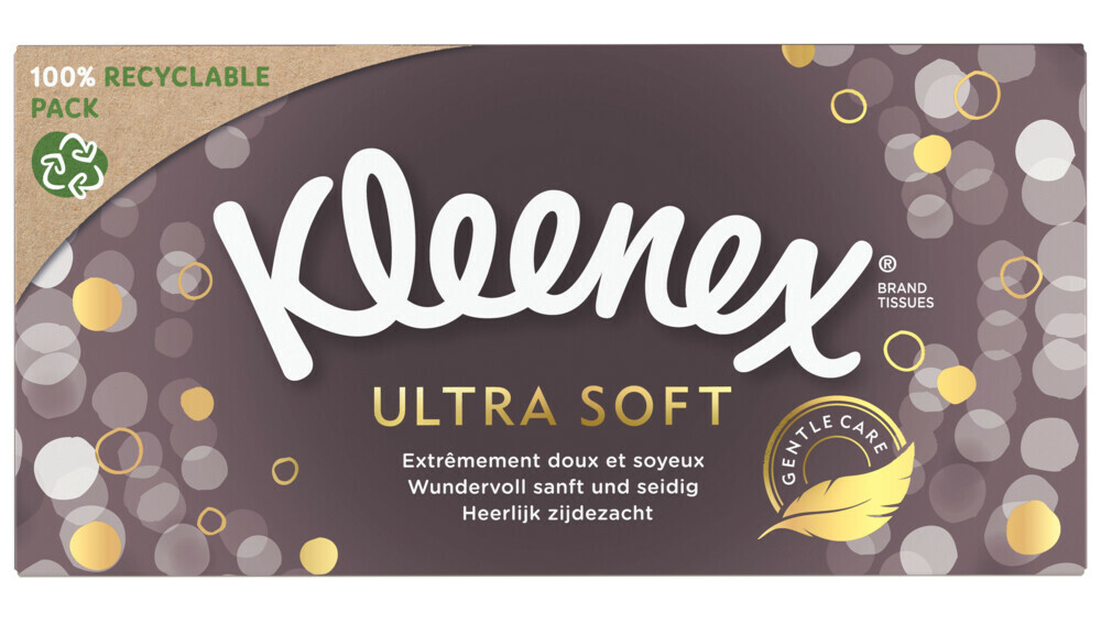 Dankzij het zijdezachte materiaal voelen de tissues bijzonder comfortabel aan, zelfs bij frequent gebruik tijdens verkoudheid of allergie. Kleenex Ultrasoft Tissues (64st) zijn extra zachte gezichtsdoekjes die speciaal zijn ontwikkeld voor de gevoelige huid.