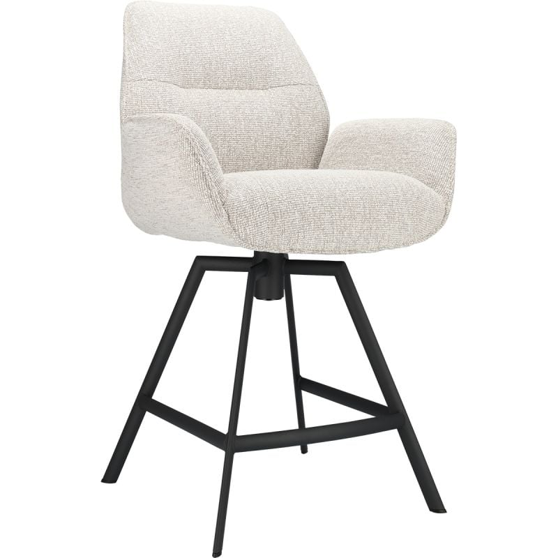 Odin heeft een zithoogte van 65 cm en is daarmee perfect voor aan keukeneilanden met een barelement. De barkruk is bekleed met zachte stof in diverse kleuren en staat stevig op zwarte metalen poten (met terugdraaifunctie dus).