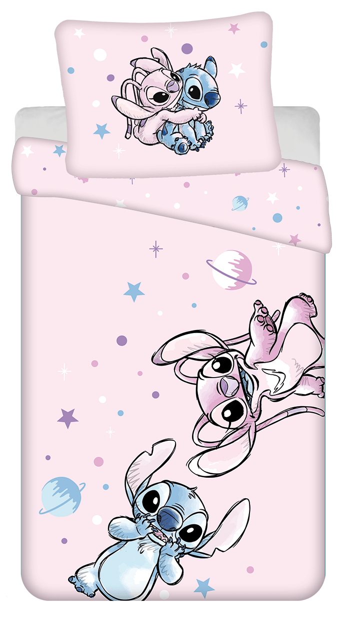 Het overtrek is dubbelzijdig bedrukt, waardoor deze reversible is. Stitch heeft een prominente plek gekregen op dit mooie dekbedovertrek en kussensloop. Deze ondeugd is een hit door de populaire films Lilo & Stitch. Een lief dekbedovertrek van de kleine alien Stitch.