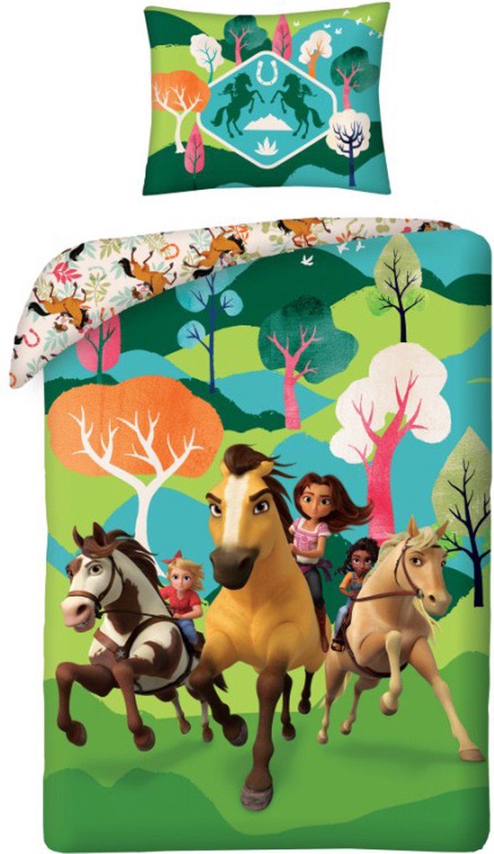 Lucky, Pru en Abigail zijn beste vriendinnen en hun paarden zijn dat ook! Het vrolijke overtrek is dubbelzijdig geprint en wordt geleverd met een extra groot kussensloop! Kortom; een geweldige cadeau voor een verjaardag of de feestdagen voor elke Spirit-fan.