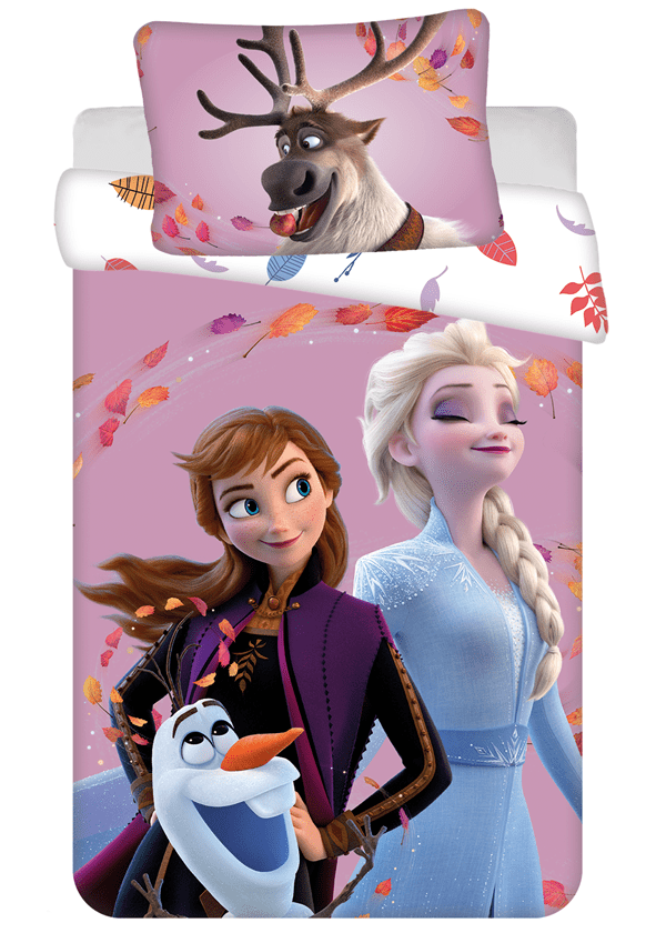 Anna, Elsa en Olaf trotseren de gure herfstwind. Frozen peuterdekbedovertrek Wind - 100 x 135 cm - Katoen