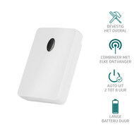 Let op: de schemer sensor is alleen te gebruiken in combinatie met AAN-UIT ontvangers met een automatisch codesysteem (niet met dim ontvangers).1x schemer sensor voor binnen en buiten Zendt een signaal naar een KlikAan-KlikUit ontvanger zodra het ingestelde schemerniveau overschreden wordt Hierdoor kunnen lampen of andere apparatuur aangeschakeld worden in combinatie met een KlikAan-KlikUit ontvanger Op iedere gewenste plaats te bevestigen, ook buiten Waterdichte behuizing, voldoet aan IP-56 norm Geen gedoe met draden of hoge spanning Automatisch codesysteem Instelbaar schemerniveau Instelbare uitschakeltijd Zendbereik tot ontvanger: minimaal 30 meter Voeding: 2 x 1,5 volt alkaline batterij type AAA (niet meegeleverd) Zendfrequentie 433,92 MHz Dit product is alleen te combineren met producten die over een automatisch codesysteem beschikken, te herkennen aan een typenummer beginnend met de letter A. Handleiding.