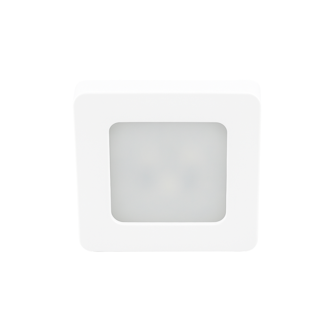 Het armatuur is uitgevoerd in de kleur 'Wit zijdeglans' en heeft een Vierkante vorm. Werkt op een spanning van AC 220/230Volt. Pluto LED mini opbouwspot 3Watt vierkant WIT dimbaar.