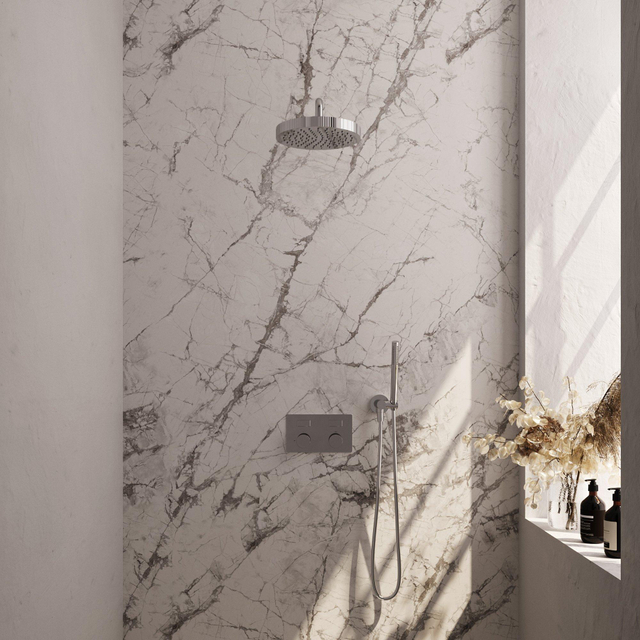 | Naam | BRAUER Stripe Thermostatische Inbouw Regendouche - Drukknoppen - SET 26 - 25Cm Douchekop - Gebogen Muurarm - Staaf Handdouche - Doucheslang - Wandaansluitbocht - Chroom 5-CE-415 |
