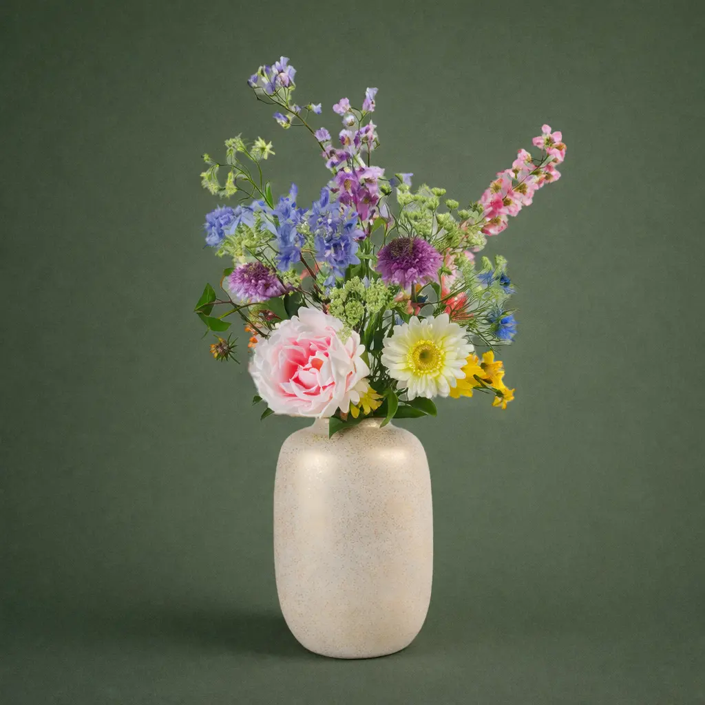 Dit zijden bloemen boeket is ideaal voor verschillende stijlen, of je nu kiest voor een moderne, landelijke, of boho stijl. Of je nu op zoek bent naar een kunstbloemen vaas arrangement of een prachtig boeket van nep bloemen, bij ons vind je altijd de beste kwaliteit.