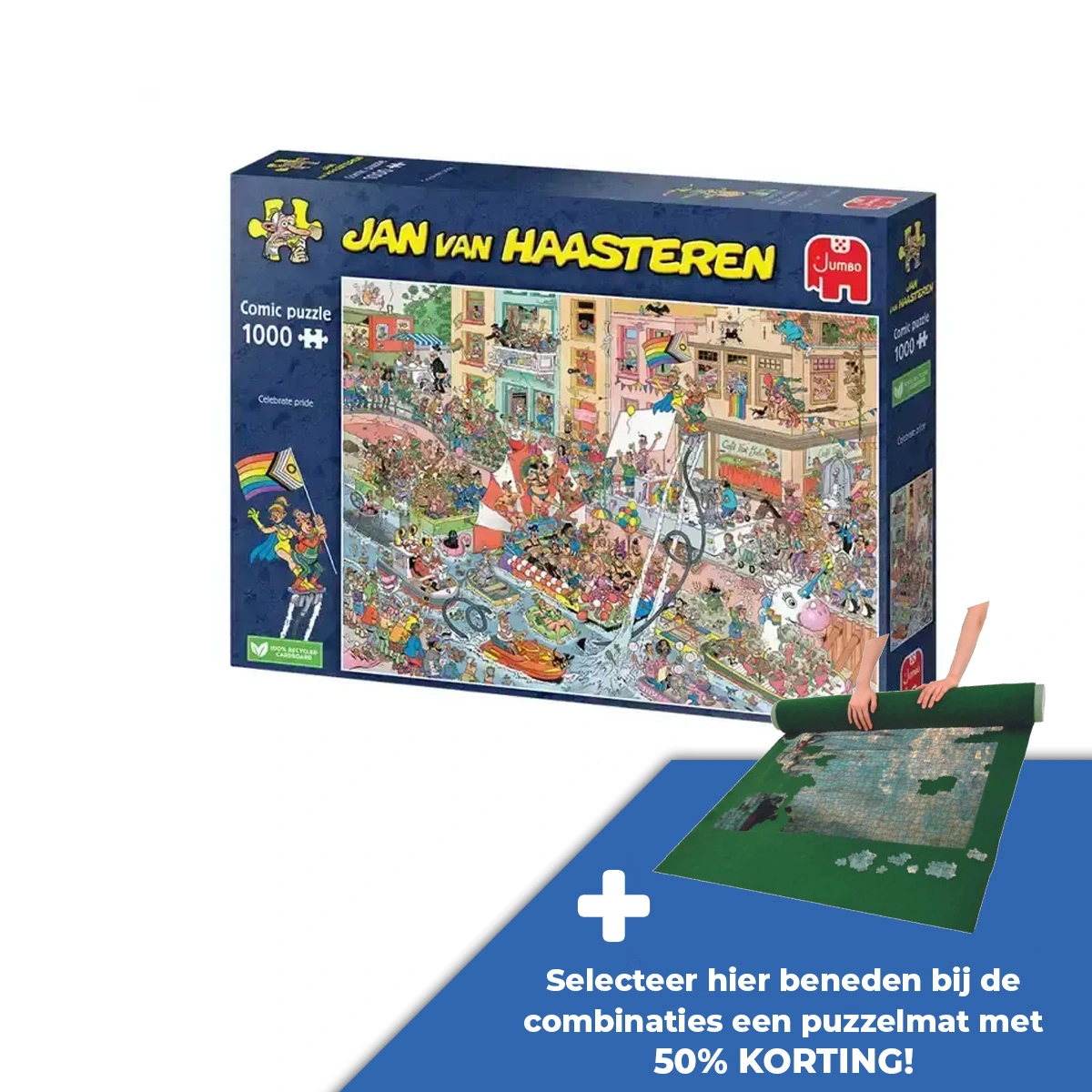 De Jan van Haasteren Celebrate Pride 1000 puzzel viert diversiteit, vrolijkheid en humor in de kenmerkende stijl van Jan van Haasteren.