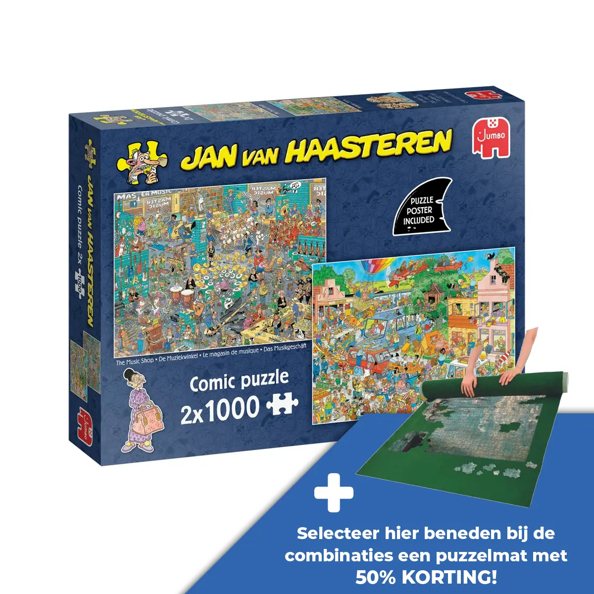 Deze set bevat twee puzzels van elk 1000 stukjes, ideaal voor wie van een langere, geconcentreerde puzzelsessie houdt. Puzzel Jan van Haasteren Muziek & Vakantie 2×1000