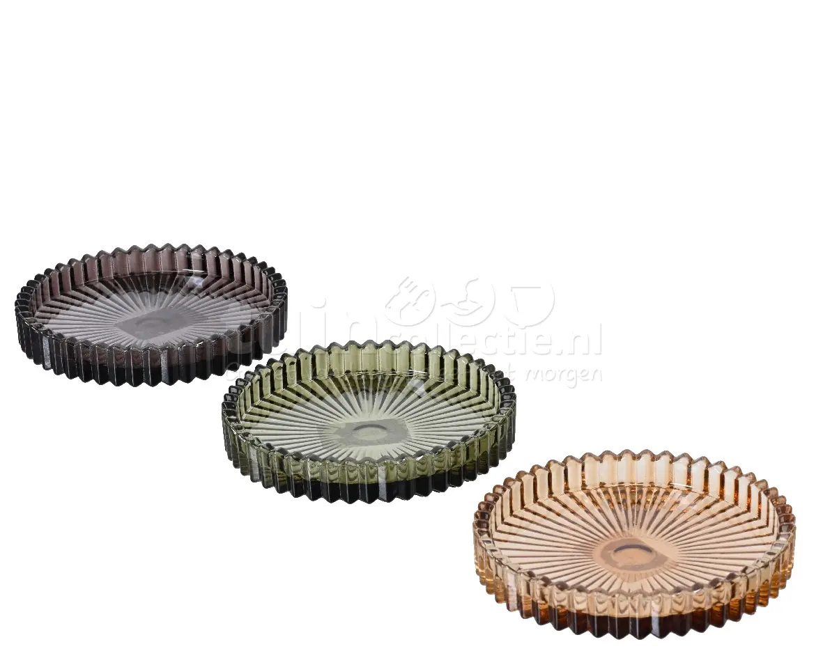 De onderzetter is gemaakt van glas en heeft een rib design, met een opstaand randje. Onderzetter Ribbel Glas Ø10cm Assorti 1st