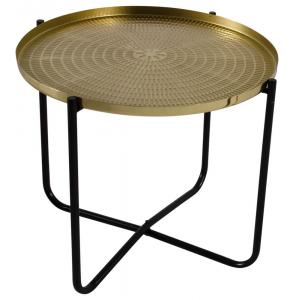 El Hierro bijzettafel goud 35 cm Specificaties: Diameter: 40.5 cm Hoogte: 35 cm Materiaal: Metaal Kleur: Goud/zwart....