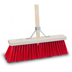 Bezem kunstvezel 40cm met steelHarde bezem met houten steelBezem compleet met steel en beugel ter versteviging van de steel, gevuld met lange harde kunstvezel.