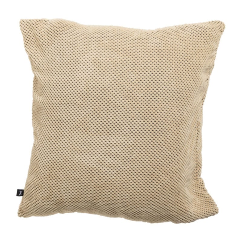 Met een afmeting van 60x60 cm is dit kussen een leuke toevoeging aan elke bank, stoel of bed. Het kussentje heeft een beige kleur en een patroon van blokjes, waardoor het een moderne en stijlvolle uitstraling heeft.