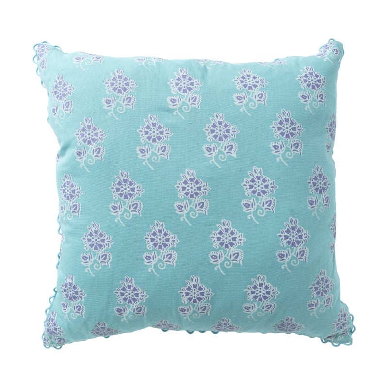Het kussen is effen blauw aan de achterkant en voorzien van een ritssluiting aan de onderkant. Combineer het met de andere kleurrijke kussens voor een speelse mix van kleuren en prints. Perfect voor op de bank, een fauteuil of in de slaapkamer. De golvende omranding van het kussen is blauw.