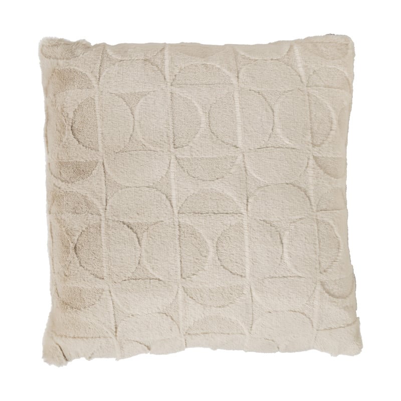 Het kussen is effen beige aan de achterkant en is voorzien van een ritssluiting aan de onderkant. Het strakke ontwerp, zonder te veel poespas, voegt een elegante eenvoud toe aan je ruimte, terwijl de zachte vulling zorgt voor een heerlijk ondersteunende ervaring.