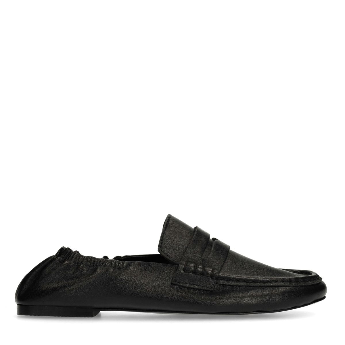 De instappers hebben een lage hak van 1 cm. Deze zwarte leren loafers van Sacha hebben een elastisch rimpel design aan de achterkant.