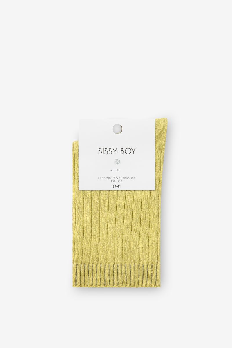 De sokken hebben een ribstofkwaliteit met lurex in de stof verwerkt. Gele sokken met lurex van Sissy-Boy.
