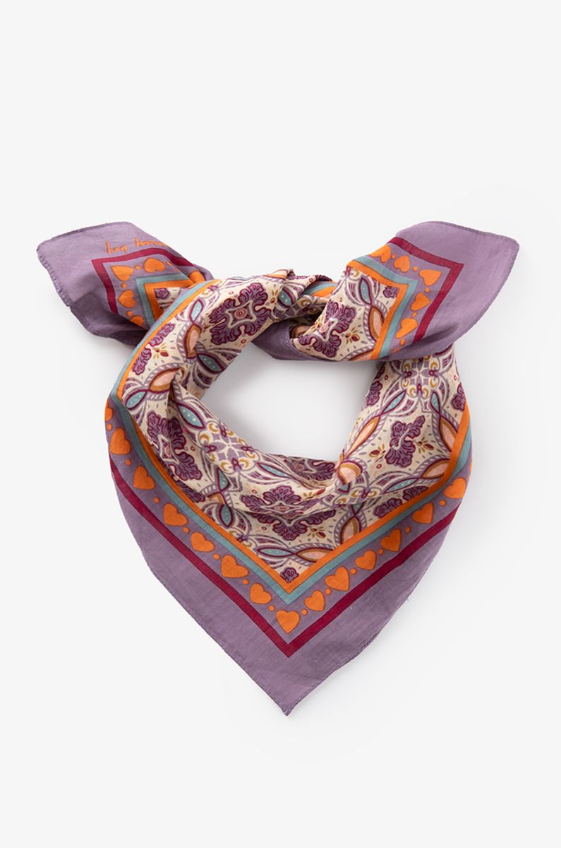 Afmeting: 54 x 54 cm. Lichtpaarse sjaal met bloemen print van Sissy-Boy Deze sjaal heeft een glanzende look en is bedrukt met een all-over bohemian bloemen print.