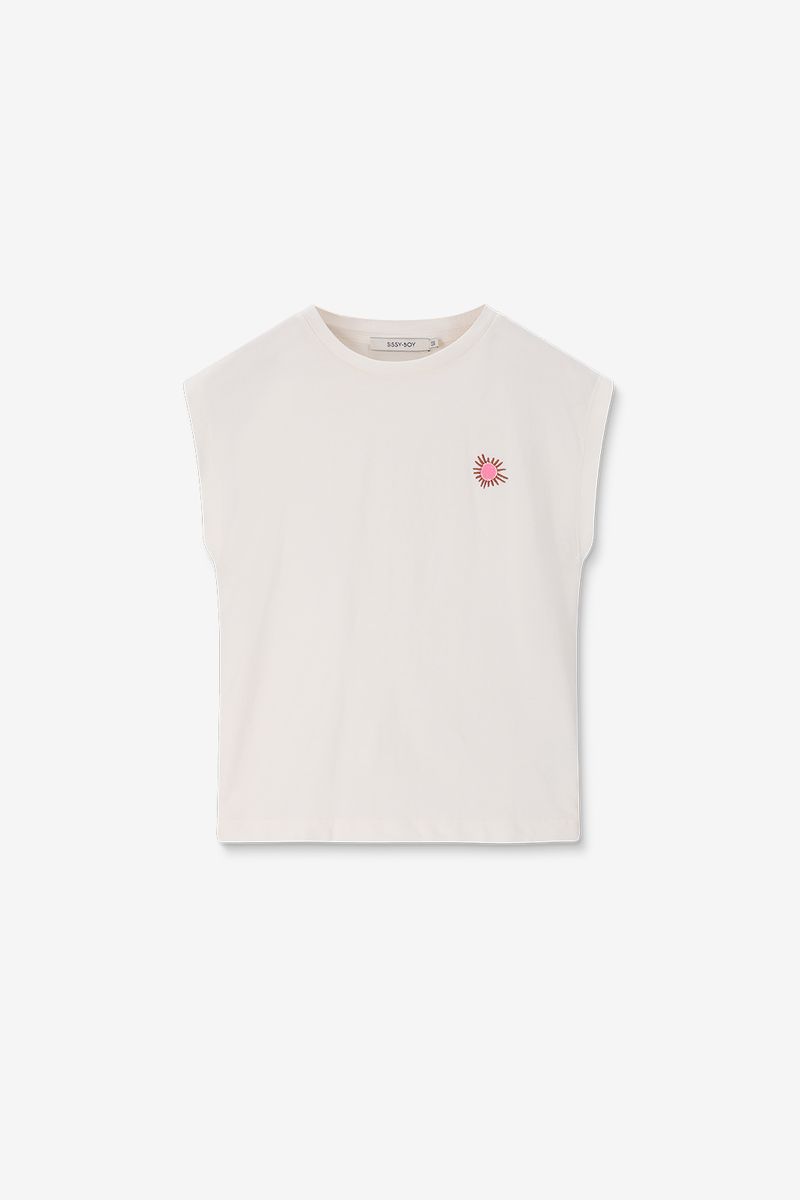 Het T-shirt heeft een ronde halslijn, korte mouwen en een regular fit. Wit T-shirt met kapmouwen van Sissy-Boy.