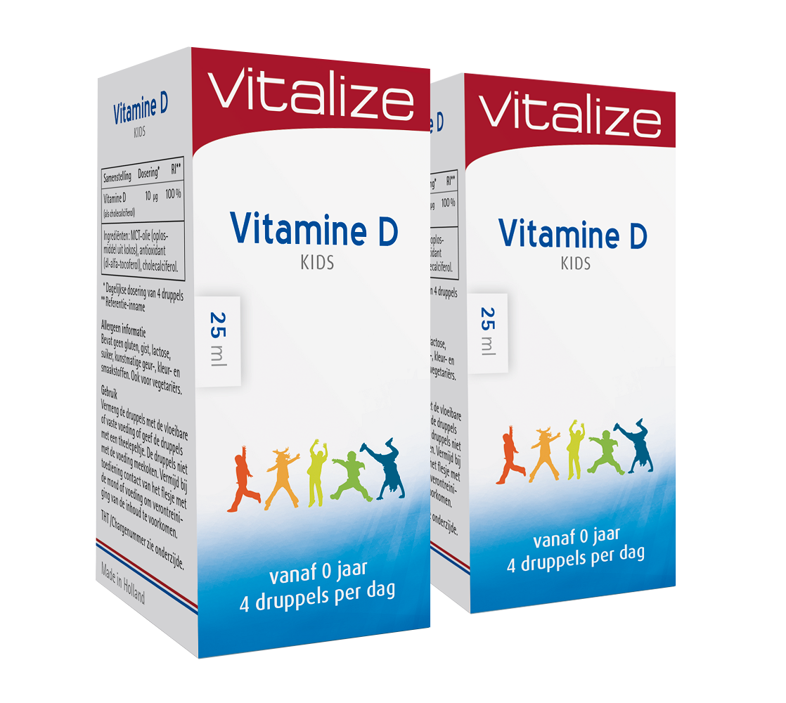 Baby's en jonge kinderen hebben voor de normale groei en ontwikkeling van het beendergestel voldoende vitamine D nodig. Vitalize Vitamine D Kids is speciaal ontwikkeld voor baby's, kinderen en volwassenen die druppels prefereren boven capsules.