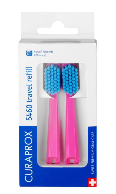 Curaprox Travel Refill Tandenborstelkoppen bevat twee opzetborstels voor de CS 5460 reistandenborstel uit de Curaprox Reisset.