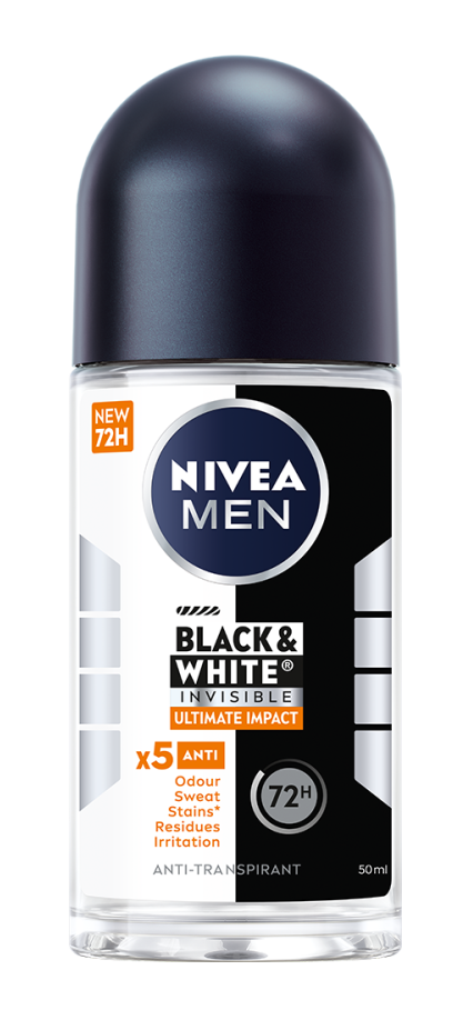 Nivea Men Black & White Invisible Ultimate Impact Deoroller is een anti-transpirant en de oplossing voor het vermijden van ongewenste vlekken op uw kleding.