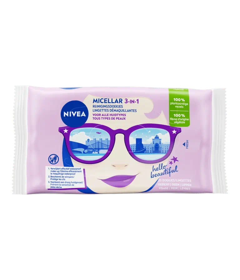 Nivea Micellair 3-in-1 Reinigingsdoekjes (25 stuks) zijn innovatieve reinigingsdoekjes die met behulp van Micellair technologie uw gezicht effectief reinigen.
