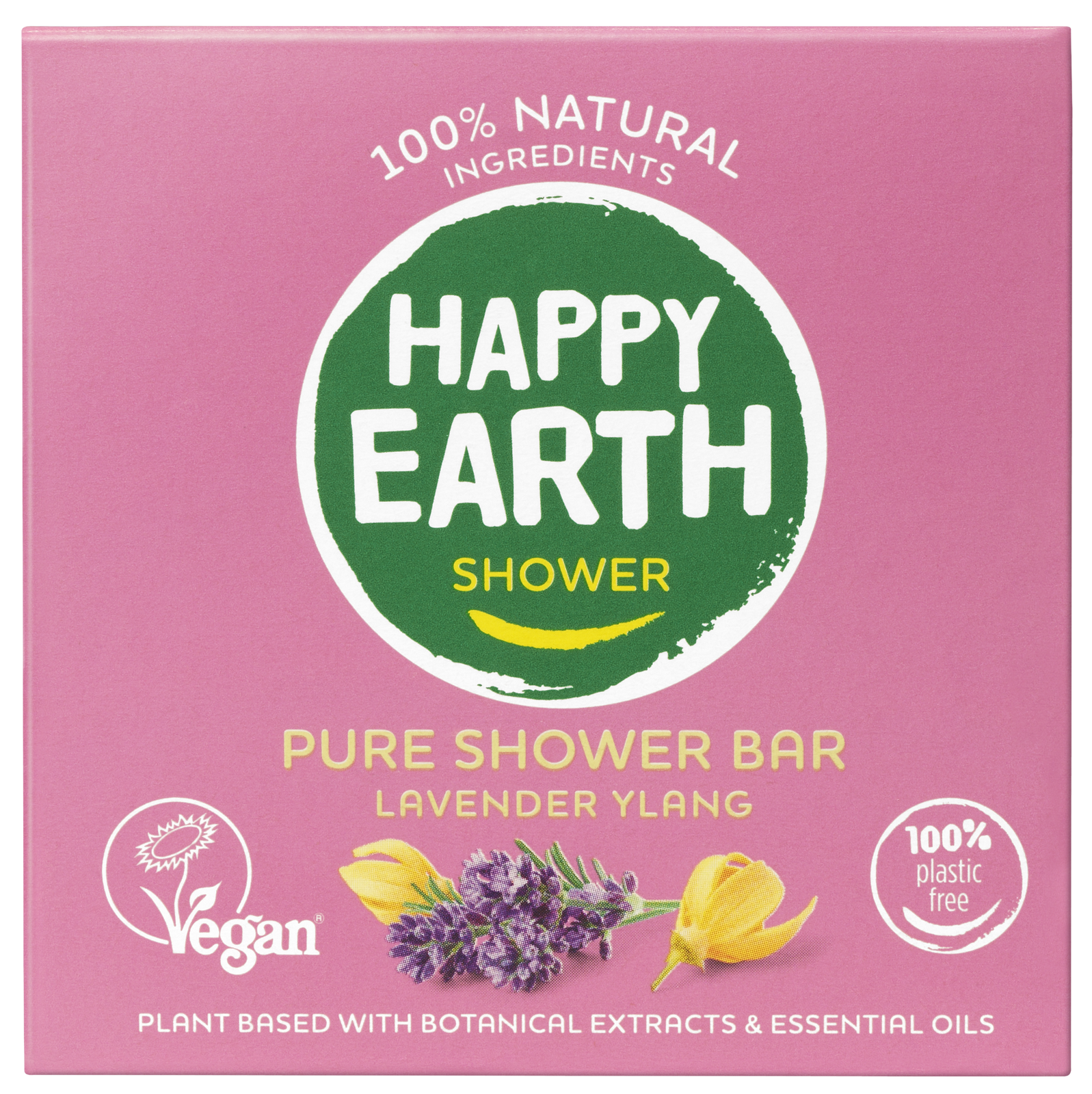 Wat is Happy Earth Pure Shower Bar Lavender Ylang 90GR?Happy Earth Pure Shower Bar Lavender Ylang (90 gram) is een 100% natuurlijke douchezeep.