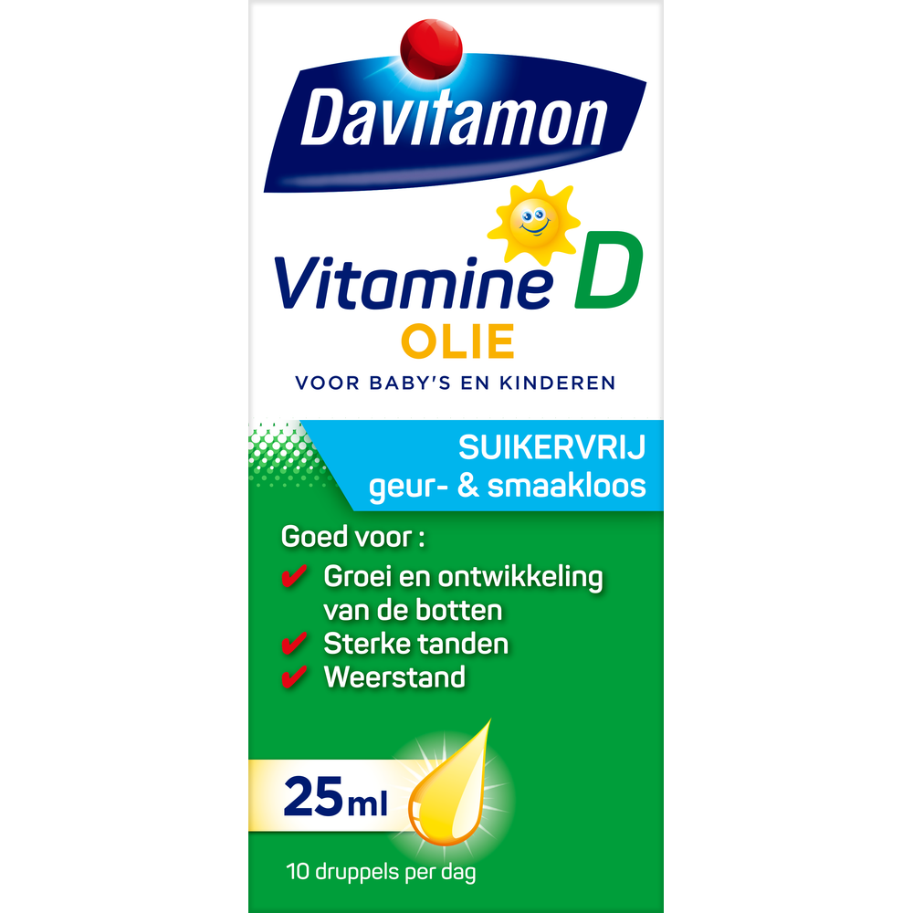 Het bevat vitamine D, wat essentieel is voor de groei en ontwikkeling van sterke botten en een goed gebit. Davitamon Vitamine D Olie is een voedingssupplement dat speciaal ontwikkeld is voor baby's en kinderen.