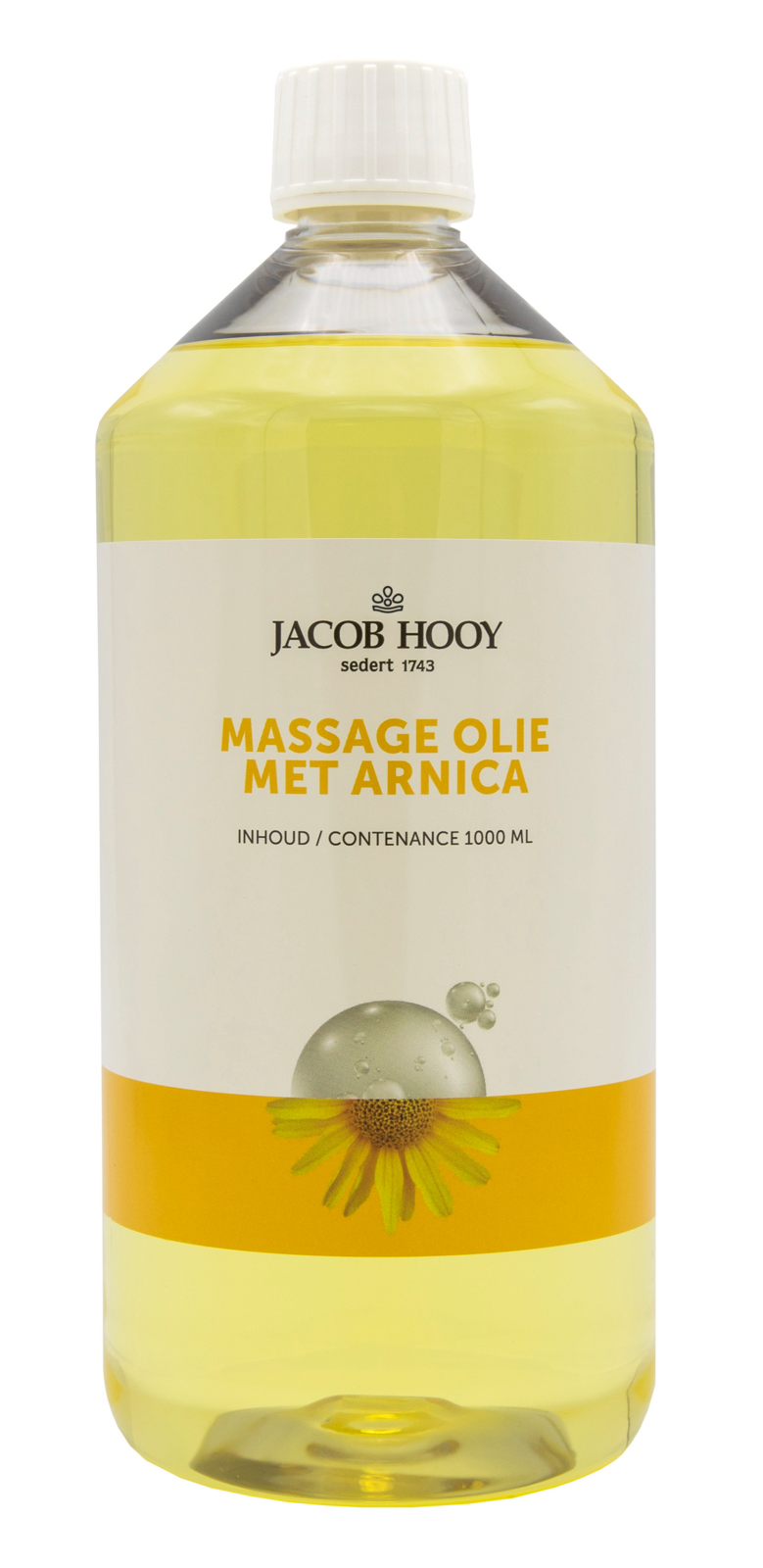 Jacob Hooy Massage Olie Arnica (1000ml) zorgt voor een ontspannende massage.