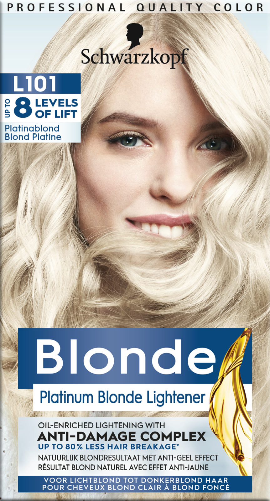 Creëer een prachtige platinum blonde look zoals u nog nooit gehad heeft. Schwarzkopf Blonde L101 Platinum Blond is geschikt voor lichtblond tot donkerblond haar en licht uw haar tot wel 8 tinten op.