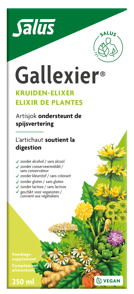 Artisjokken ondersteunen de reinigende werking van de lever. Salus Elixer Gallexier is een vloeibaar elixer met artisjok dat de spijsvertering ondersteunt*, met name na het eten van een uitgebreide of vette maaltijd.
