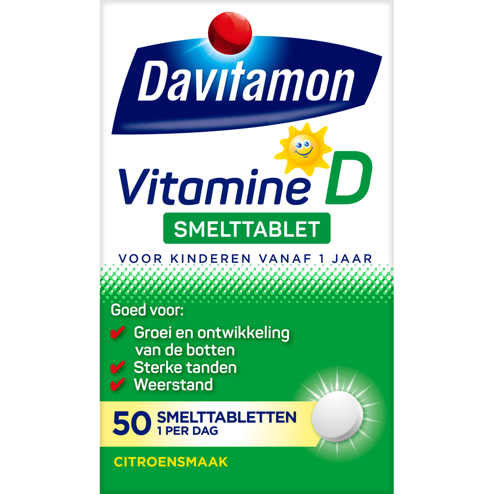 Deze smelttabletten bevatten vitamine D, wat essentieel is voor de opbouw van sterke botten en tanden. Davitamon Vitamine D Kind Smelttabletten zijn speciaal ontwikkeld voor kinderen vanaf 1 jaar.