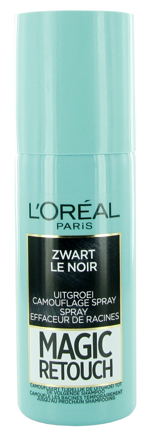 Het mengt zich met uw eigen haar zodat er geen kleurverschil ontstaat en laat zich ook weer makkelijk uitwassen. L'Oréal Paris Magic Retouch 1 Zwart is een haarkleurspray die uw (grijze) uitgroei tijdelijk camoufleert.